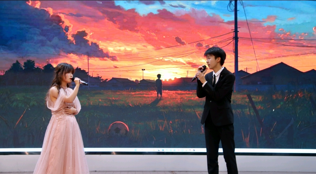 房地产协会带来双人合唱《飞云之下》!两人默契配合,一唱一和间将歌中意蕴唱得格外鲜活——似把心底对生活的热忱、对前路的憧憬,皆揉进柔婉旋律里。无一丝炫技,唯以赤诚唱腔传递曲中暖意,余韵悠长。