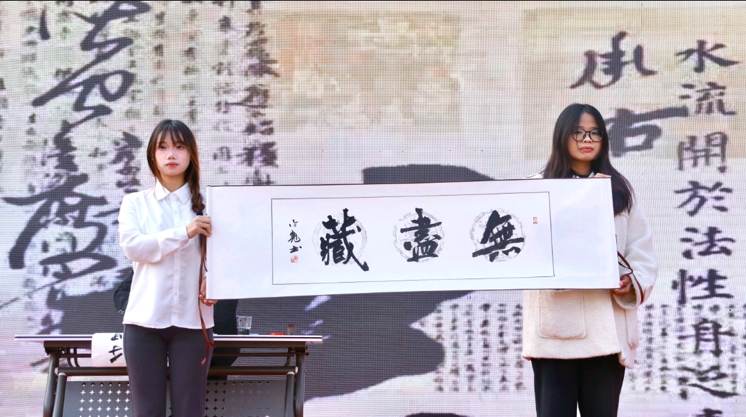 后兰亭书法协会《续韵兰亭,书乐同章》将笔墨书香与古典音律深度融合,舞台上书法爱好者挥毫泼墨,笔锋流转间尽显篆隶楷行草的汉字风骨,悠扬乐声与笔墨节奏相映成趣,以“乐随字动,字伴乐生”的创意重现文人雅趣,致敬传统书法文化的坚守与传承。