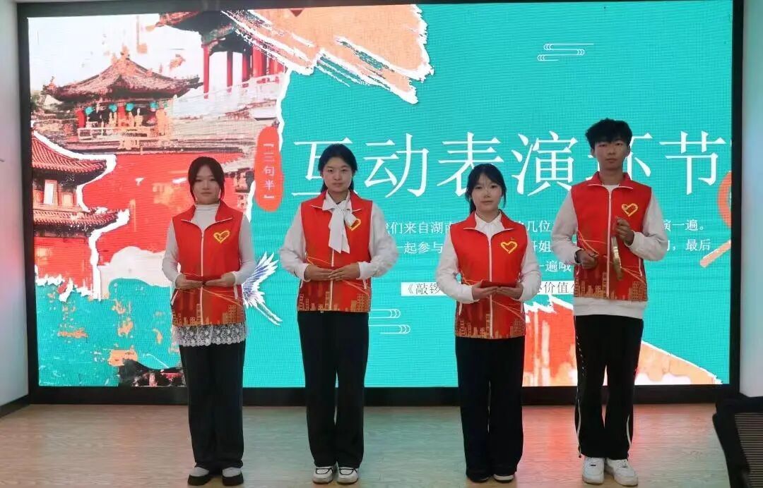 为响应十五五规划“弘扬和践行社会主义核心价值观。深化党的创新理论学习和宣传教育,坚持不懈用习近平新时代中国特色社会主义思想凝心铸魂。”的要求,1月10日下午,我院“红色血脉,薪火‘乡’传”实践团走进益阳市建新里社区,开展“品益阳故事,悟价值密钥”主题“返家乡”活动。活动以“故事讲述+互动展演”形式,将社会主义核心价值观融入乡土发展与人物事迹,打造沉浸式思政课堂。