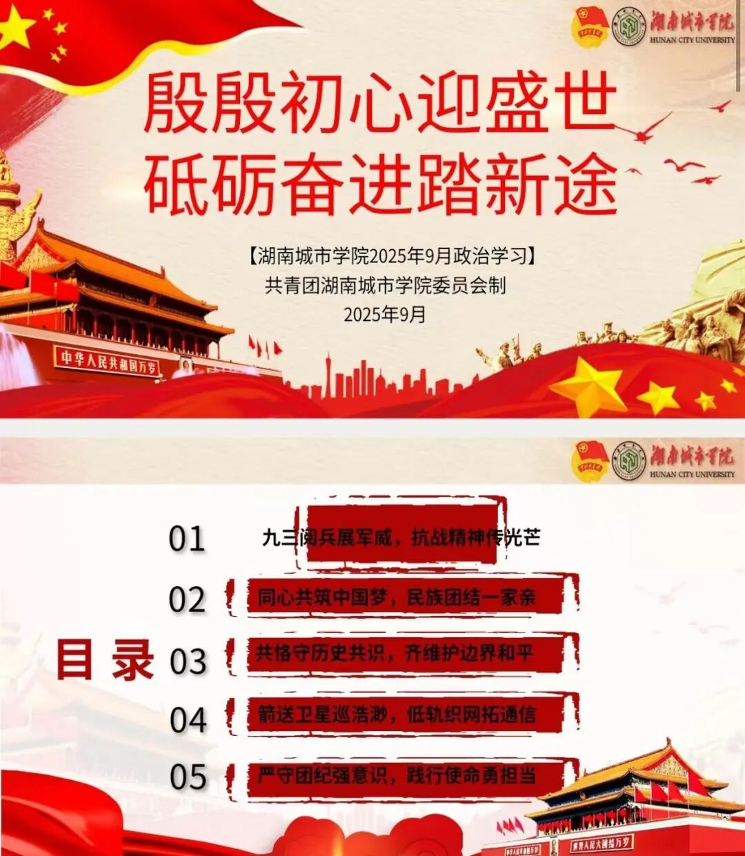 为深刻把握新时代历史性成就的内涵要义,凝聚广大青年奋进力量,聚焦强国强军、民族团结、航天科技及和平发展等关键领域,引导全体同学深入领会国家发展战略,夯实理想信念根基。2025年9月19日,我校各二级学院476个团支部围绕“殷殷初心迎盛世,砥砺奋进踏新途”主题开展了本学期的首次政治学习,以“纪念抗战胜利80周年、民族团结、中印边界和平、低轨卫星通信发展及团的纪律教育为主要内容,提升学子思想觉悟和时代责任。