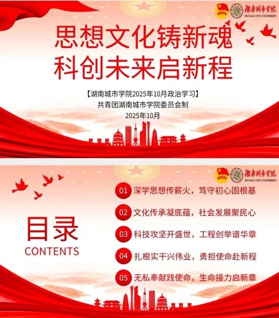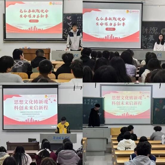 为深入学习贯彻落实二十届四中全会精神,了解中华优秀传统文化,科技创新前沿等重要内容,同时正确认知"三下乡""无偿献血"等志愿公益活动,凝聚师生力量,服务社会发展,2025年10月下旬,我校各二级学院476个团支部围绕"思想铸魂科创赋能,青春担当启新程"主题开展了本学期第二次政治学习,以学习党的最新精神,文化传承案例,科技突破成果及基层实践经验为主要内容,促进我校师生将思想自觉转化为行动自觉,为推进中国式现代化建设凝聚青春力量。