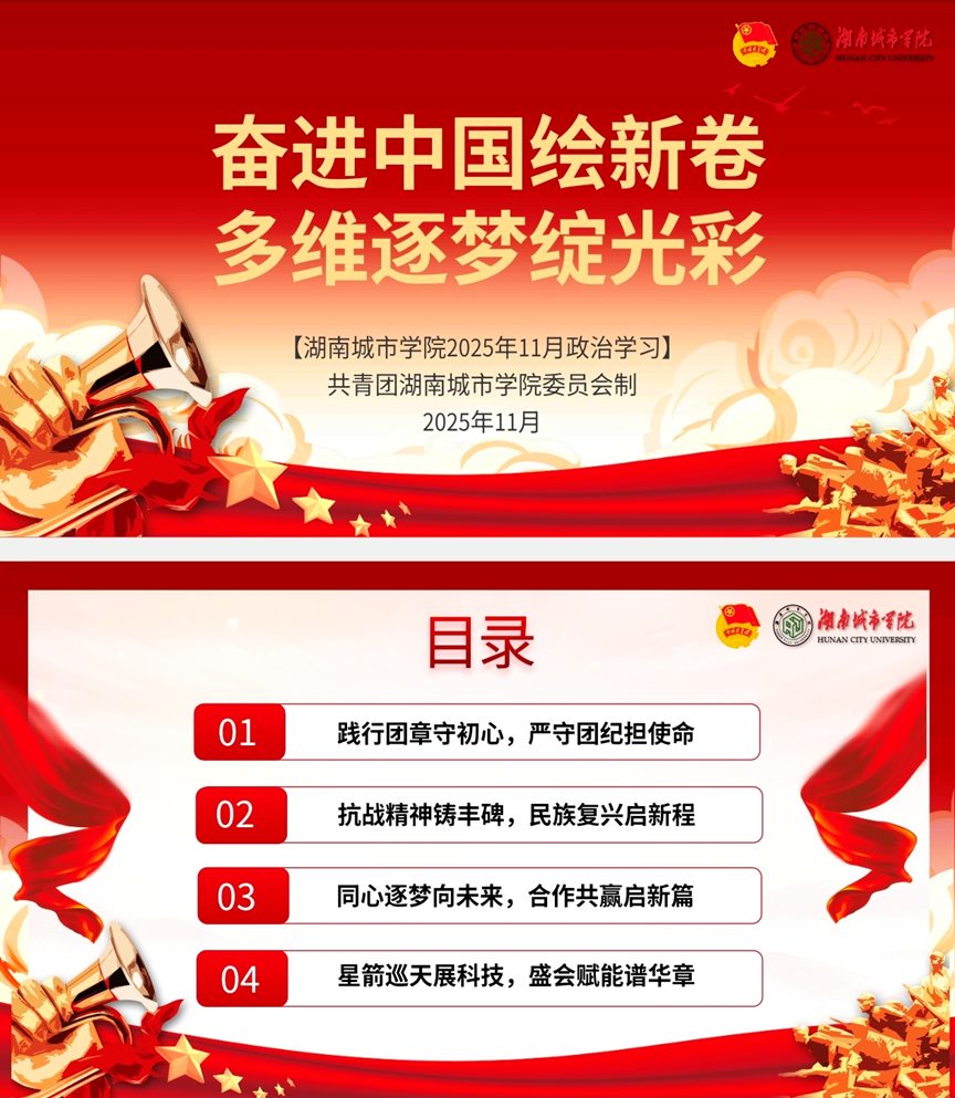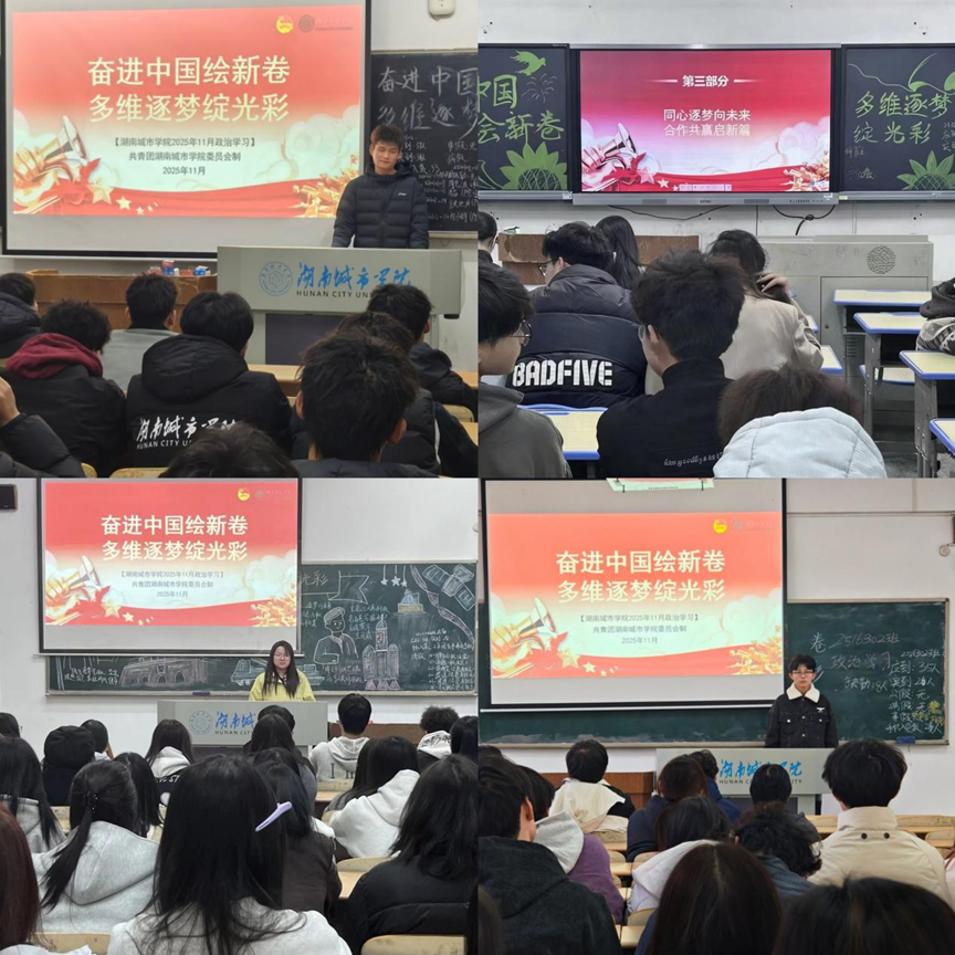 为深入贯彻二十届四中全会关于推进中国式现代化的战略部署,全面推进强国建设、民族复兴伟业,引导广大师生深刻领会新时代的使命,2025年11下旬,我校各二级学院476个团支部围绕“奋进中国绘新卷,多维逐梦绽光彩”主题开展本次政治学习。以回顾光辉历史、聚焦前沿科技、强化纪律意识等为主要内容,凝聚广大共识,为实现中华民族伟大复兴的中国梦贡献青春智慧与力量。