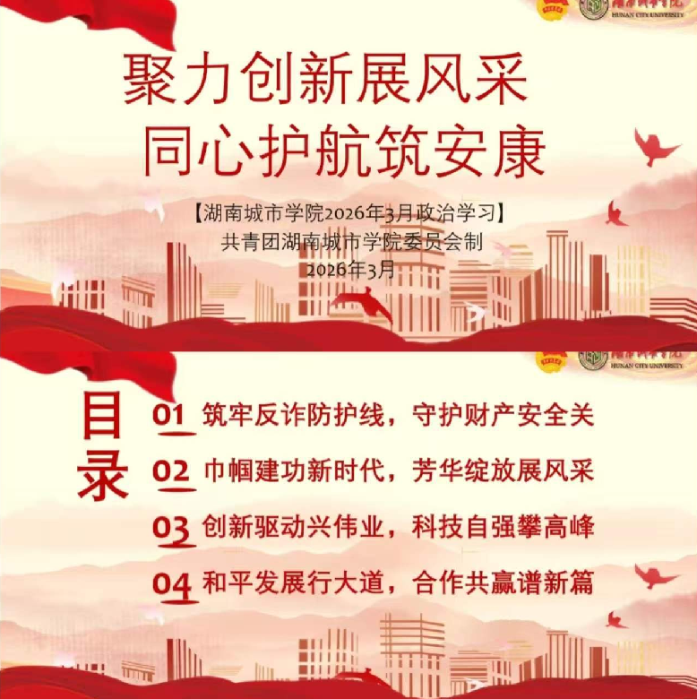 为深入学习贯彻习近平新时代中国特色社会主义思想和全国两会精神,凝聚青年奋进力量,引导城院学子筑牢安全防线、勇担时代使命、践行青春之志、坚守发展底线,助力国家创新发展与社会平安稳定。2026年3月下旬,我校各二级学院476个团支部以“聚力创新展风采,同心护航筑安康”为主题开展了三月专题政治学习暨主题团日活动。