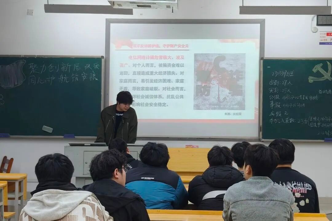 本次“聚力创新展风采,同心护航筑安康”主题团日以习近平新时代中国特色社会主义思想和全国两会精神为根本指引,着力推动青年理论学习走深走实、见行见效。学习过程中团支书结合真实案例与国家政策,围绕反诈防骗、巾帼建功、科技自立自强、和平合作共赢四大专题开展宣讲并给出学习指引。同学们在交流中深刻认识到,要把个人成长融入国家发展大局,强化安全防范与创新意识,以青春担当争当时代先锋,共护平安稳定、助力强国建设。