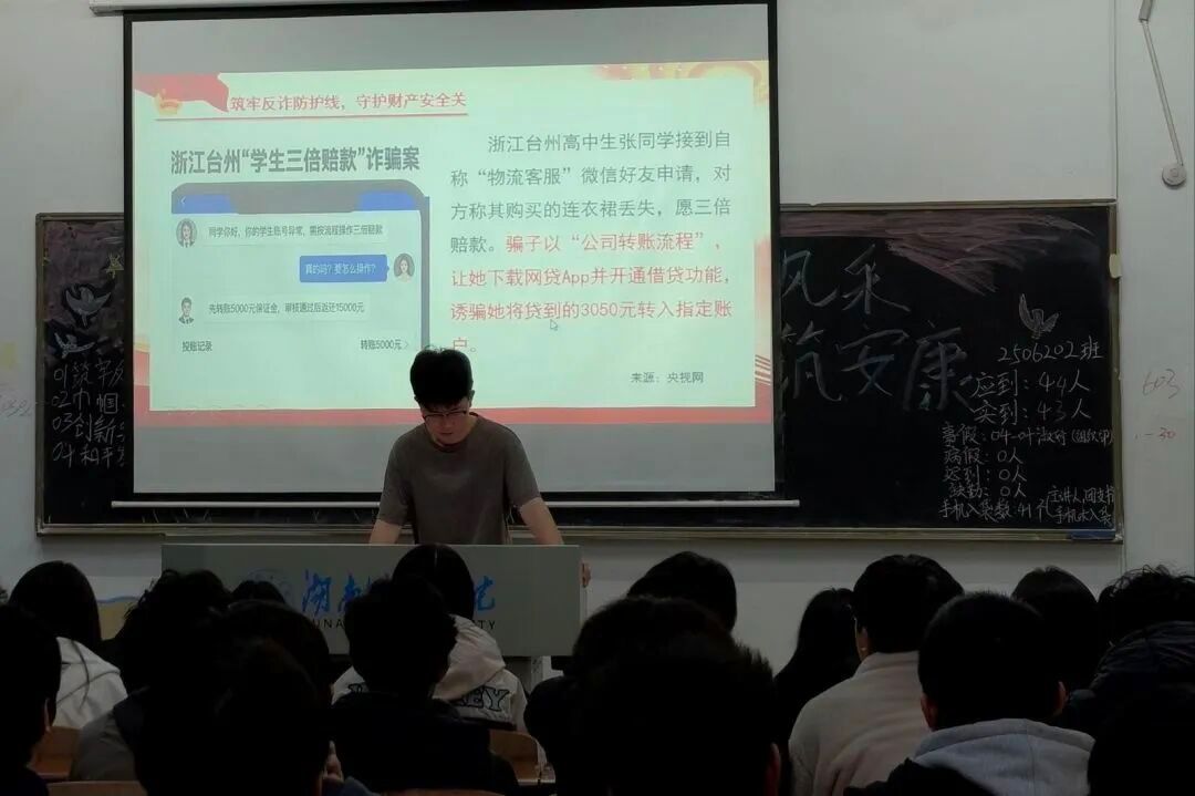 管理学院2504501班团支部潘熙淼同学在参加完本次政治学习活动后表示:“本次学习让我在筑牢反诈防线中践行两会守护民生的要求。当前电信诈骗手段隐蔽,危害群众财产安全,作为青年,我会牢记‘三不一多’原则,安装反诈APP,主动向身边人普及反诈知识,共同筑牢安全防线,以点滴行动守护人民群众的切身利益,践行人民至上的理念。”