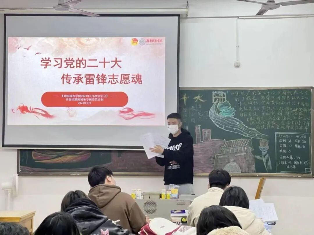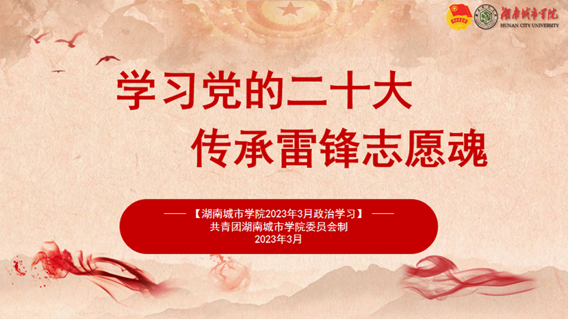 为深入学习贯彻党的二十大精神、“两会”精神和习近平总书记关于弘扬雷锋精神重要讲话重要指示批示精神,为深入学习党的二十大精神,传承并发扬雷锋志愿精神,引导青年学生城院青年厚植爱党、爱国、爱社会主义的情怀感,更加坚定地走好新时代长征路。2023年3月26日,我校各二级学院611个团支部围绕“学习党的二十大,传承雷锋志愿魂”主题开展了本学期第一次政治学习。