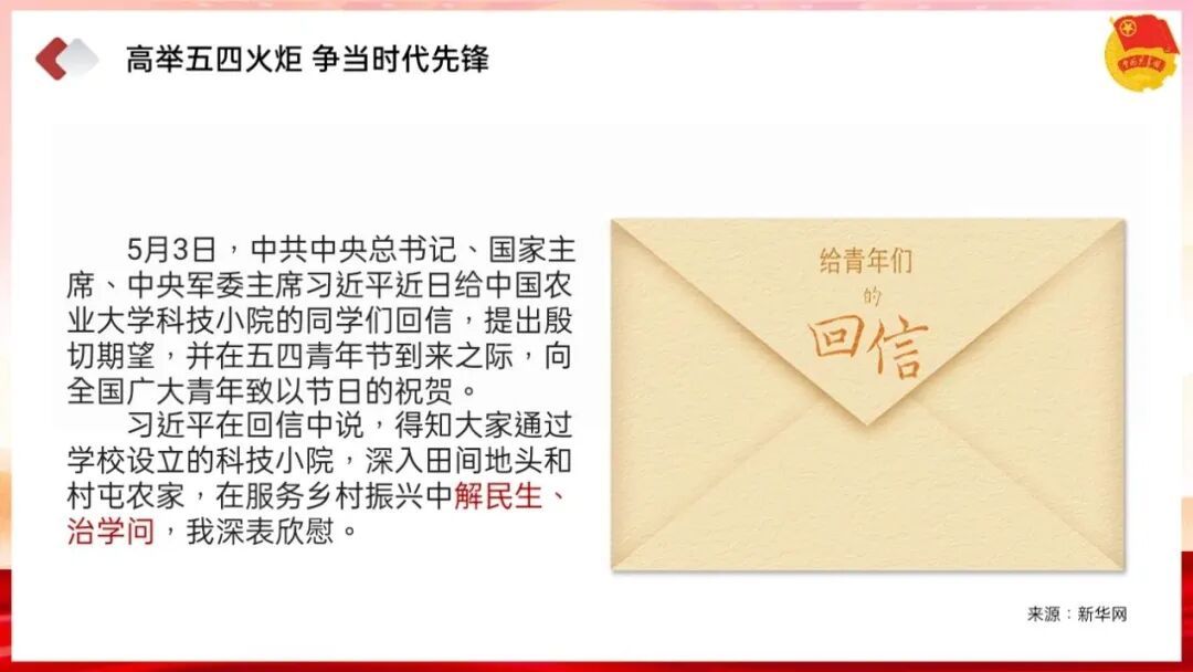 为深入学习五四精神,贯彻党的二十大精神,引导学生在历史的脉络中传承信仰的力量,在盛世的青春里进行奋斗之路,争当民族复兴大任的时代新人。2023年5月21日,我校各二级学院611个团支部围绕"青春心向党,奋斗新时代"主题开展了本学期第三次政治学习。
